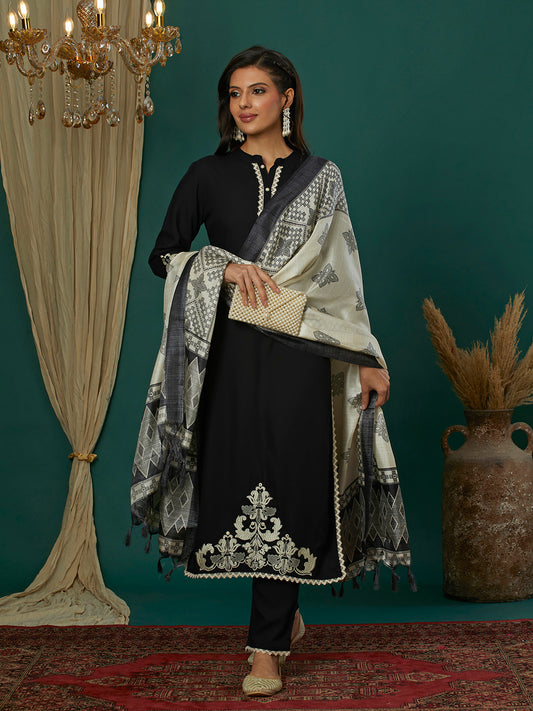 Black embroidered Kurta with Trousers with dupattaKurta design: Floral embroidered Straight shape Regular style V-neck,...
