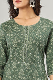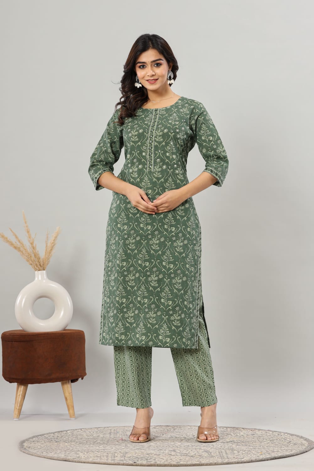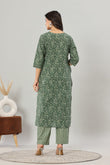 INDYES Ethnic Motifs Printed Round Neck Straight Pure Cotton Kurta with Trousers & Dupatta for Women