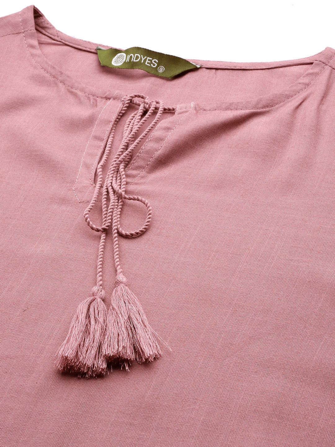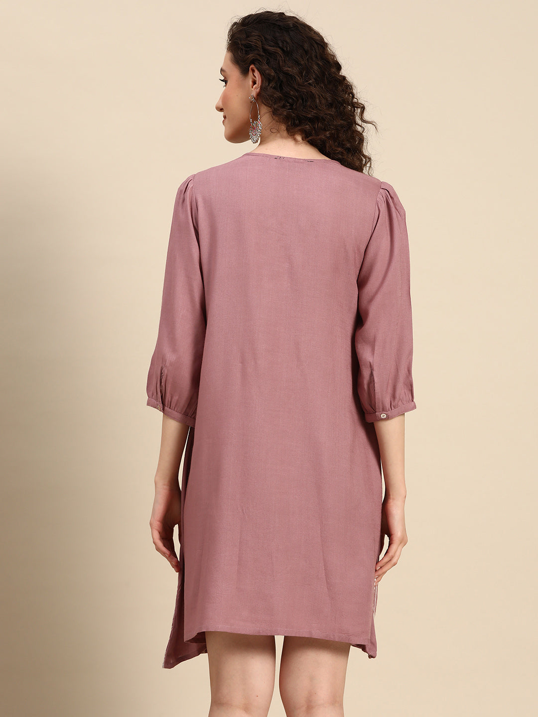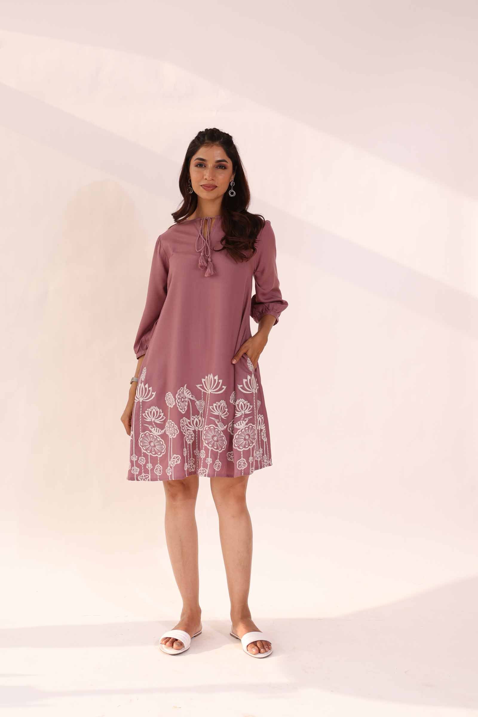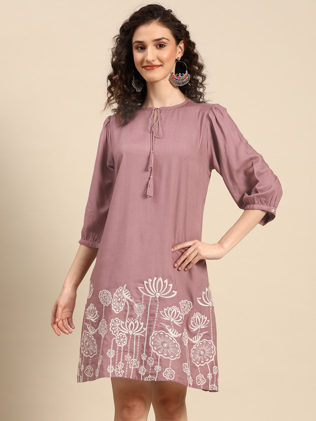Floral Embroidered Tie-Up Neck A-Line Dress