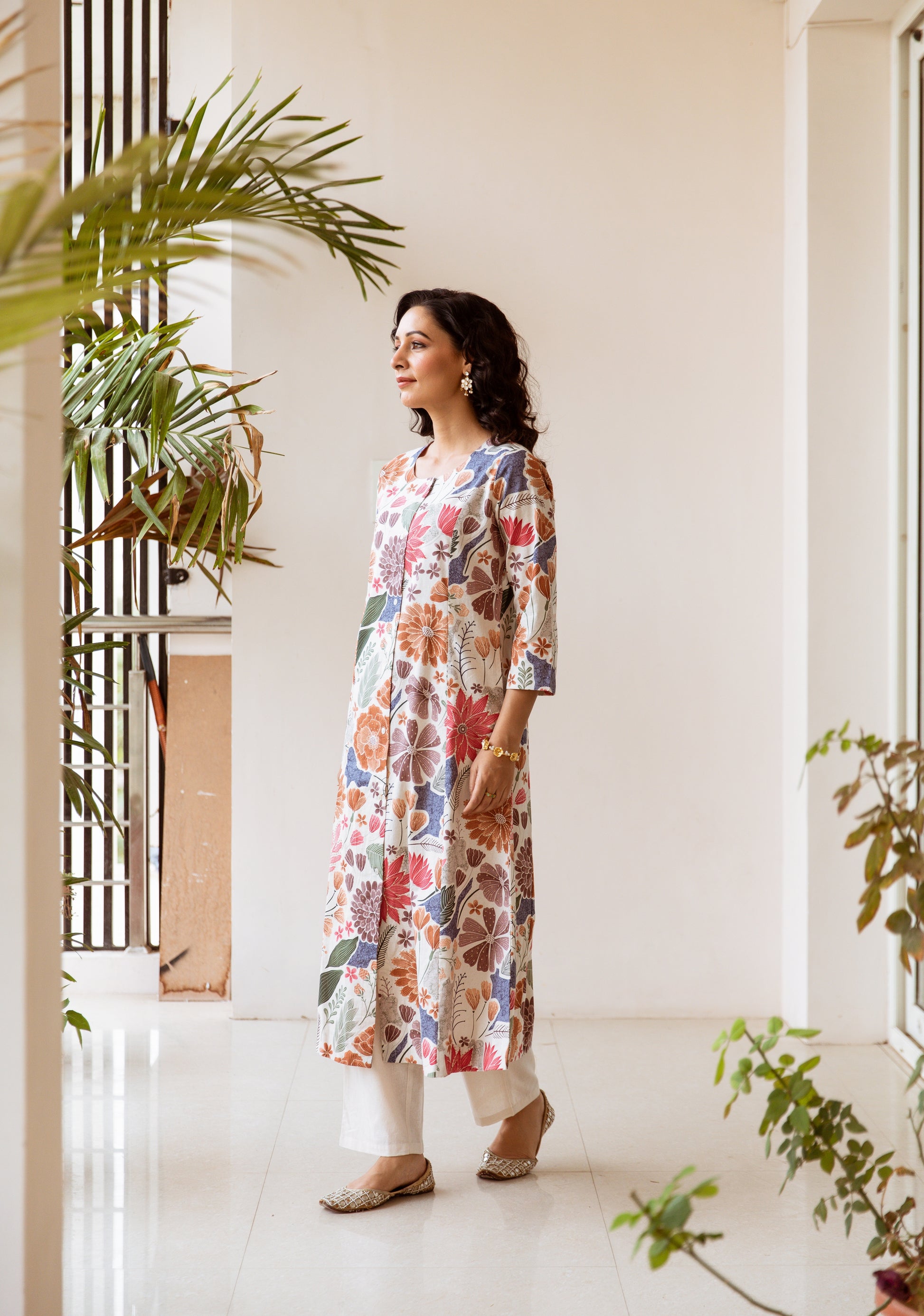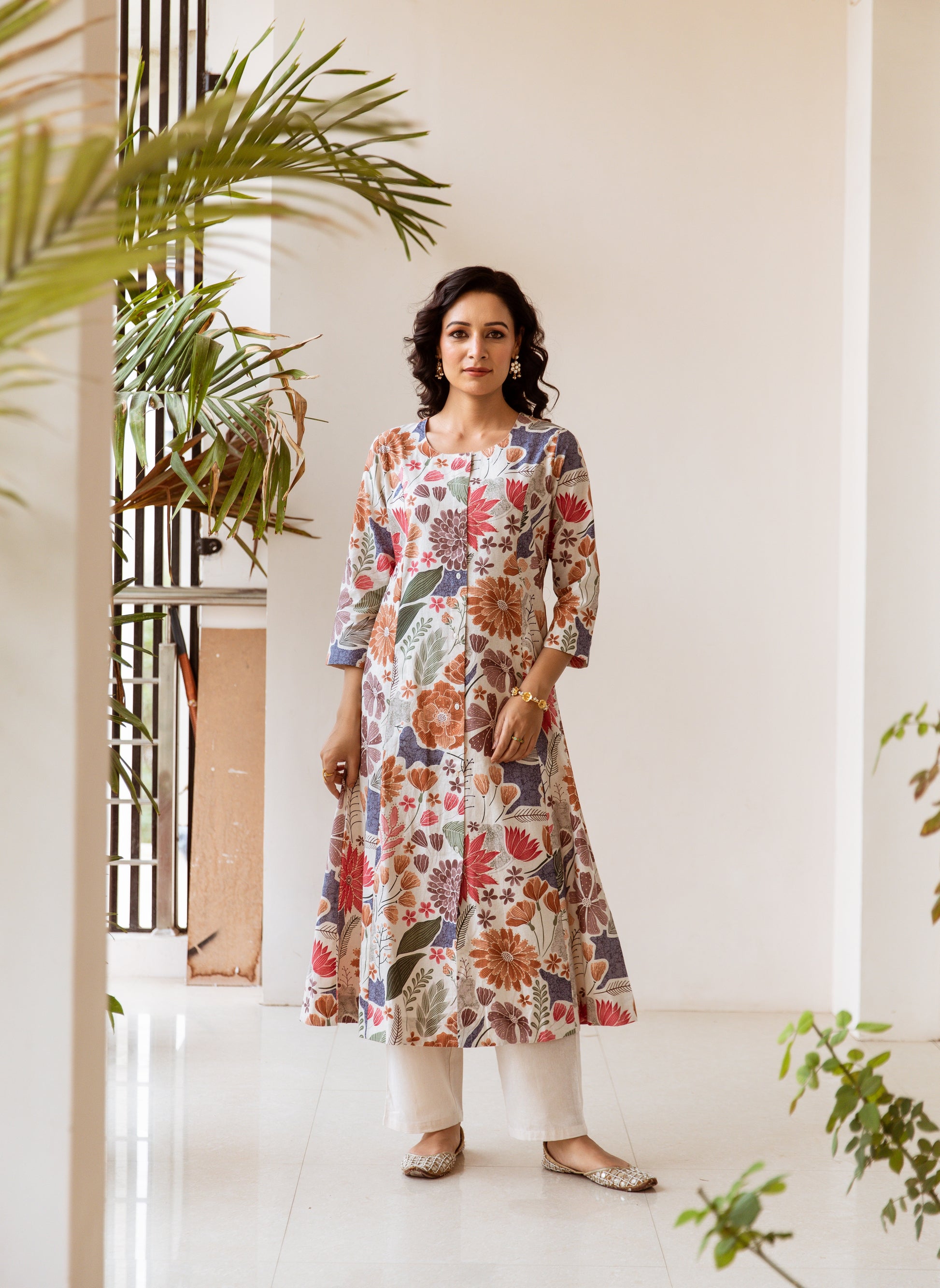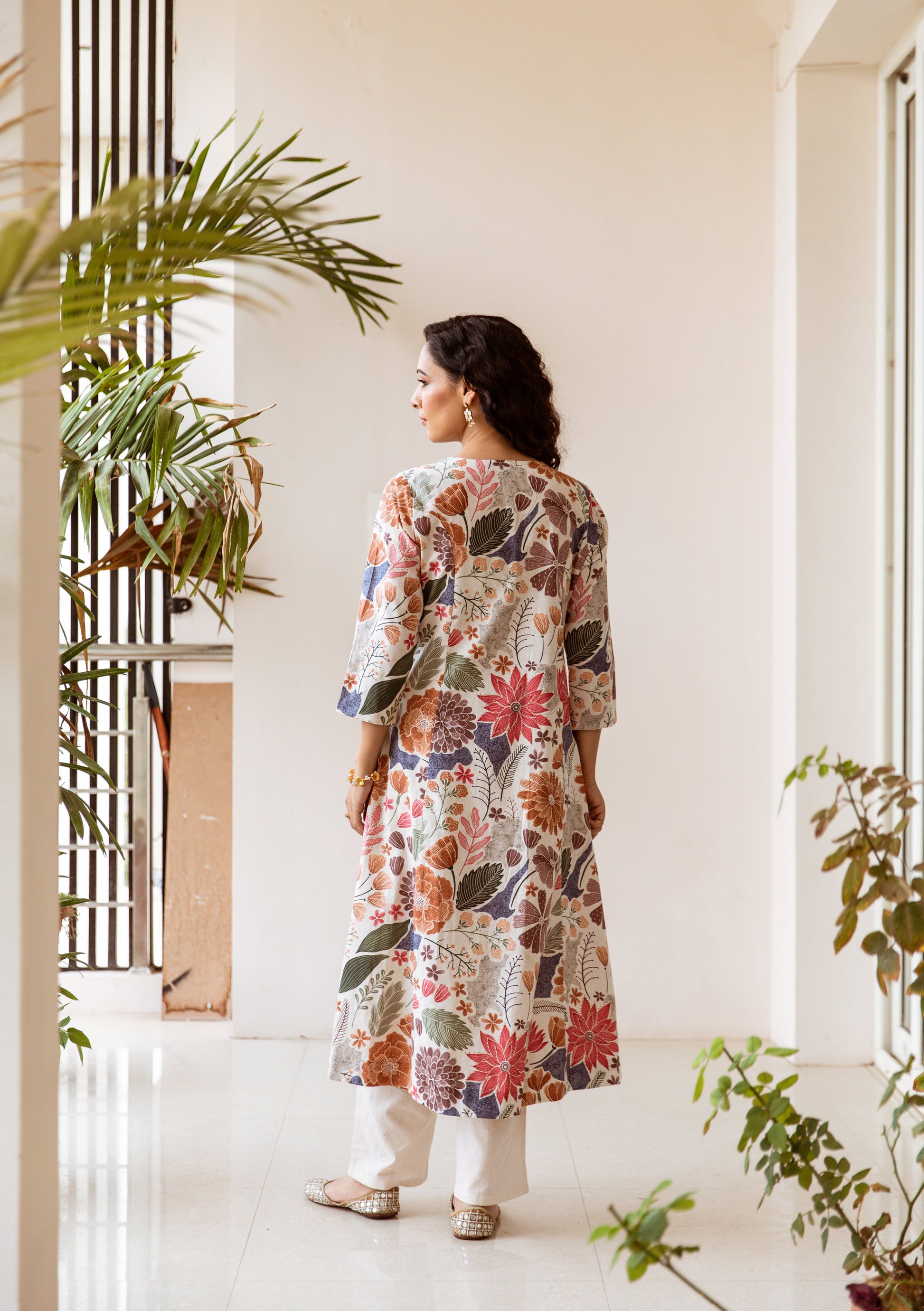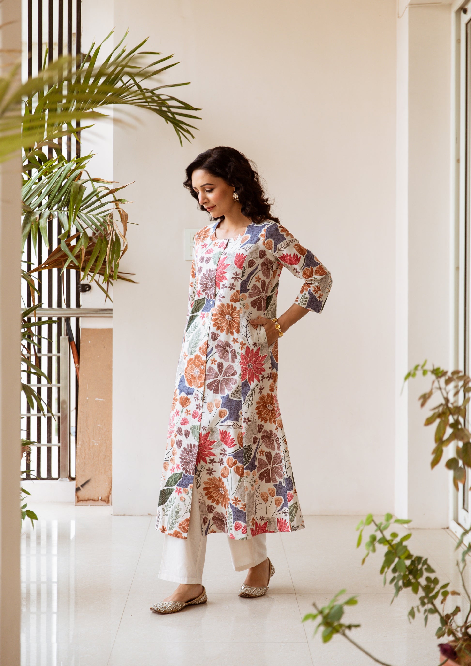 Women Multi Colour Floral Print A-Line Kurta Palazzo Set
