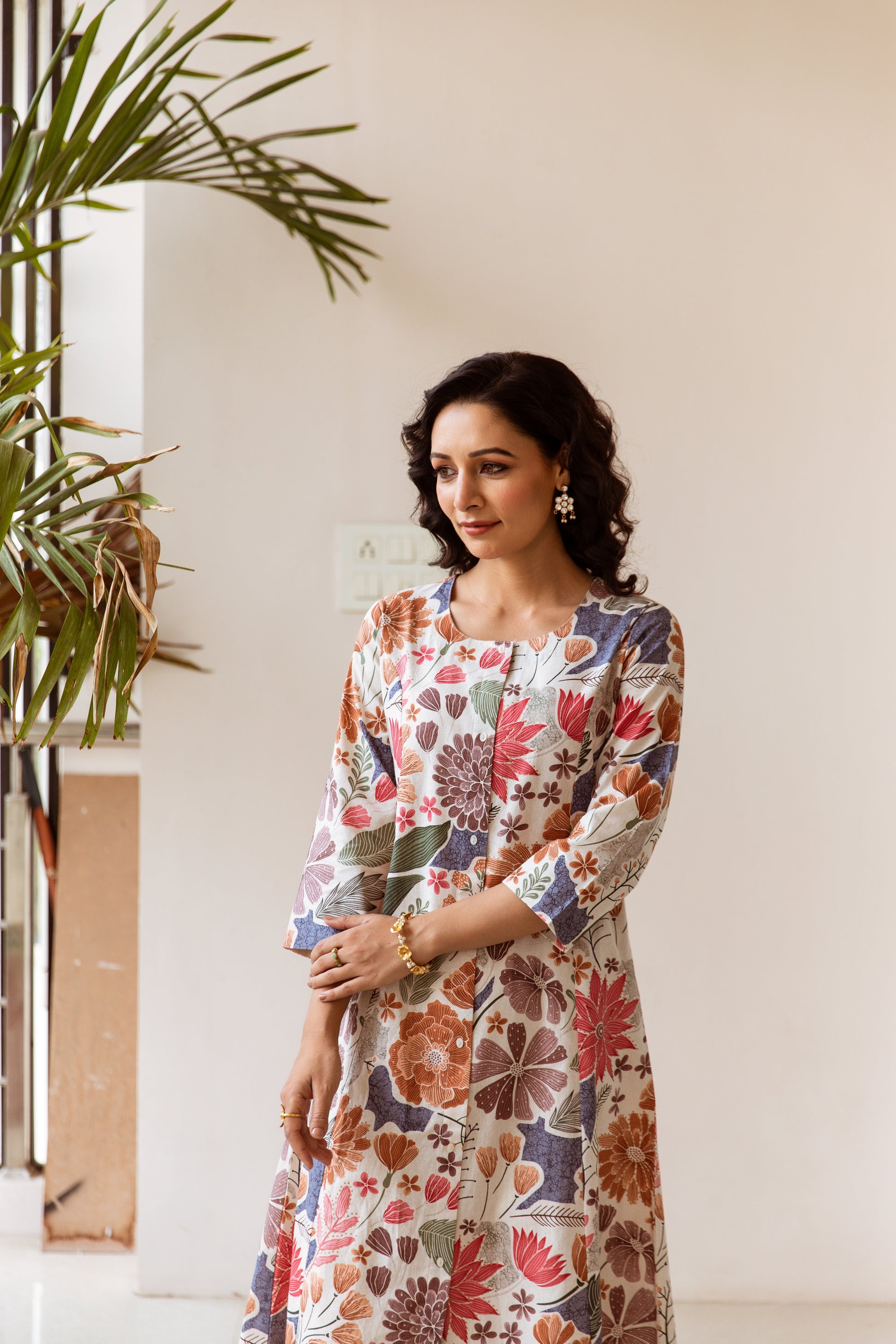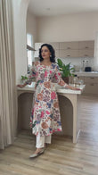 INDYES Floral Printed Pure Cotton Anarkali Kurta With Trouser for Women