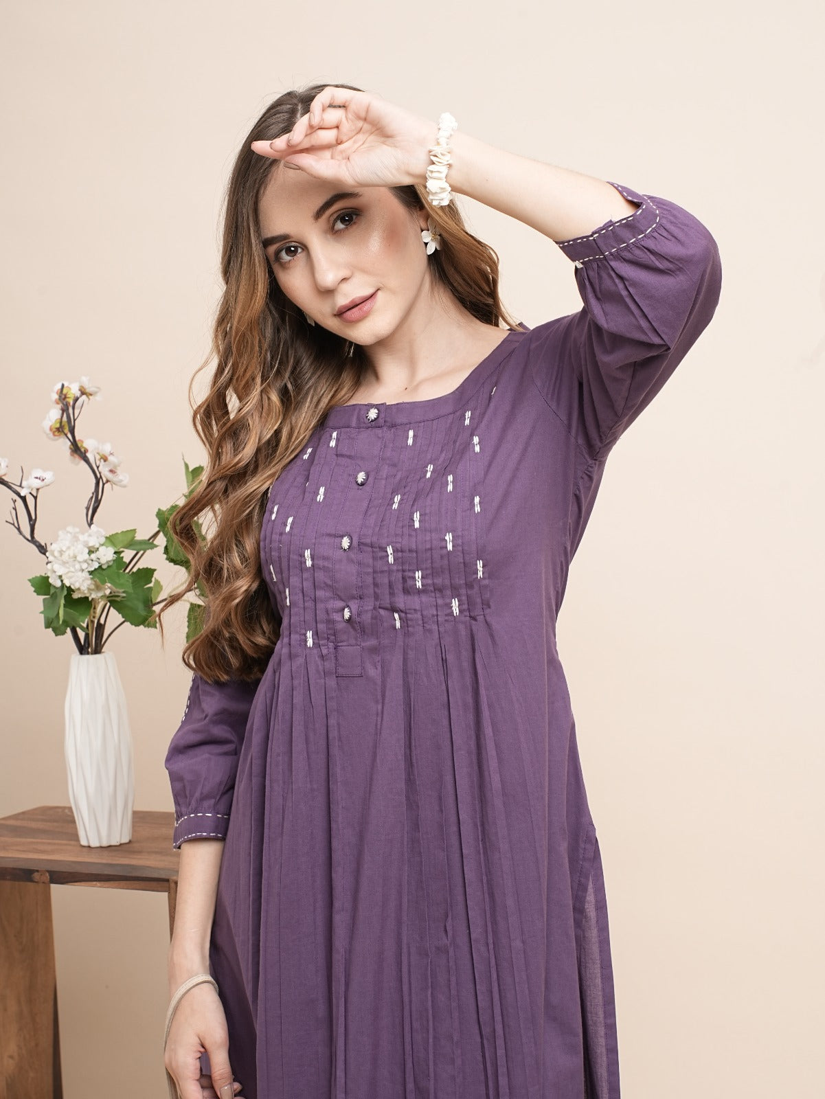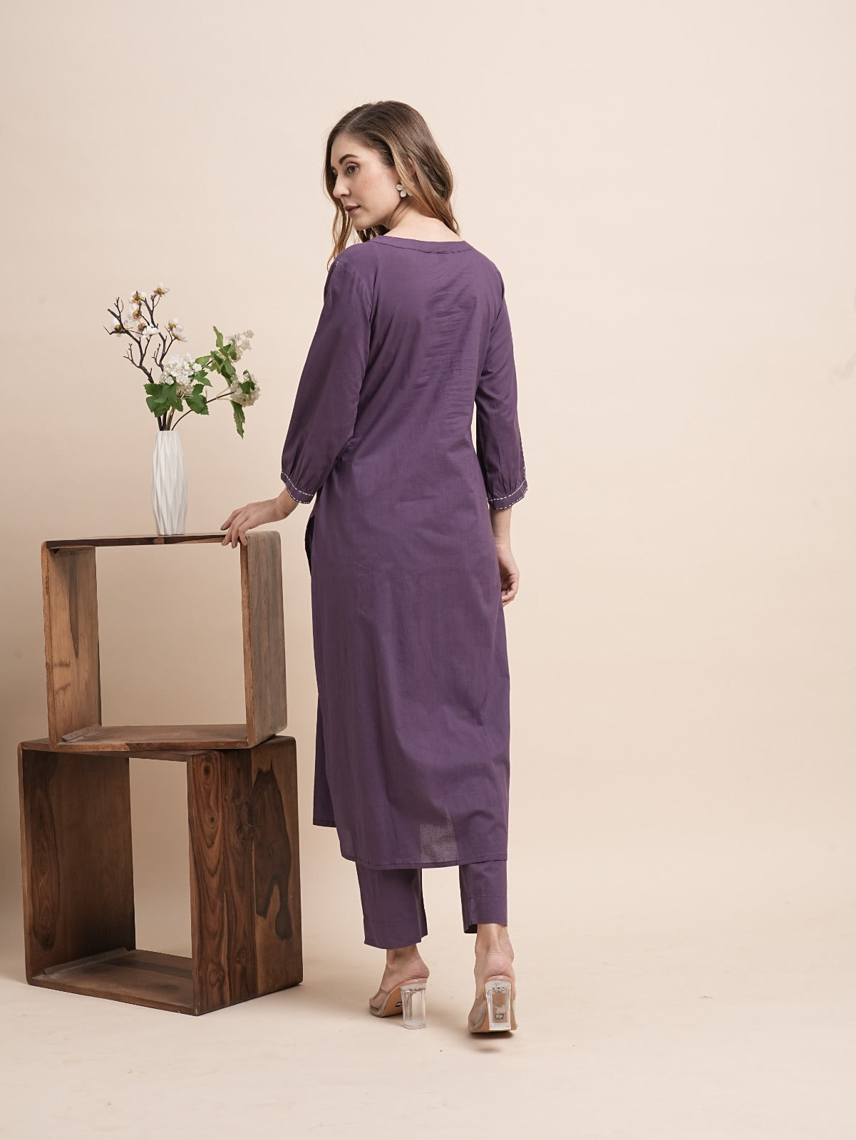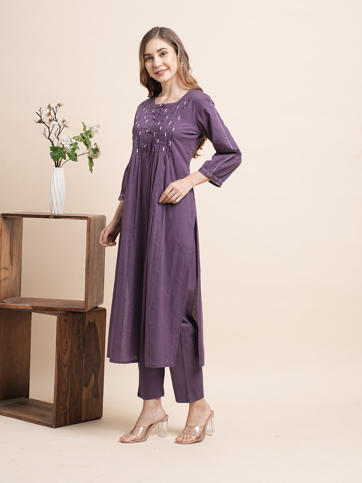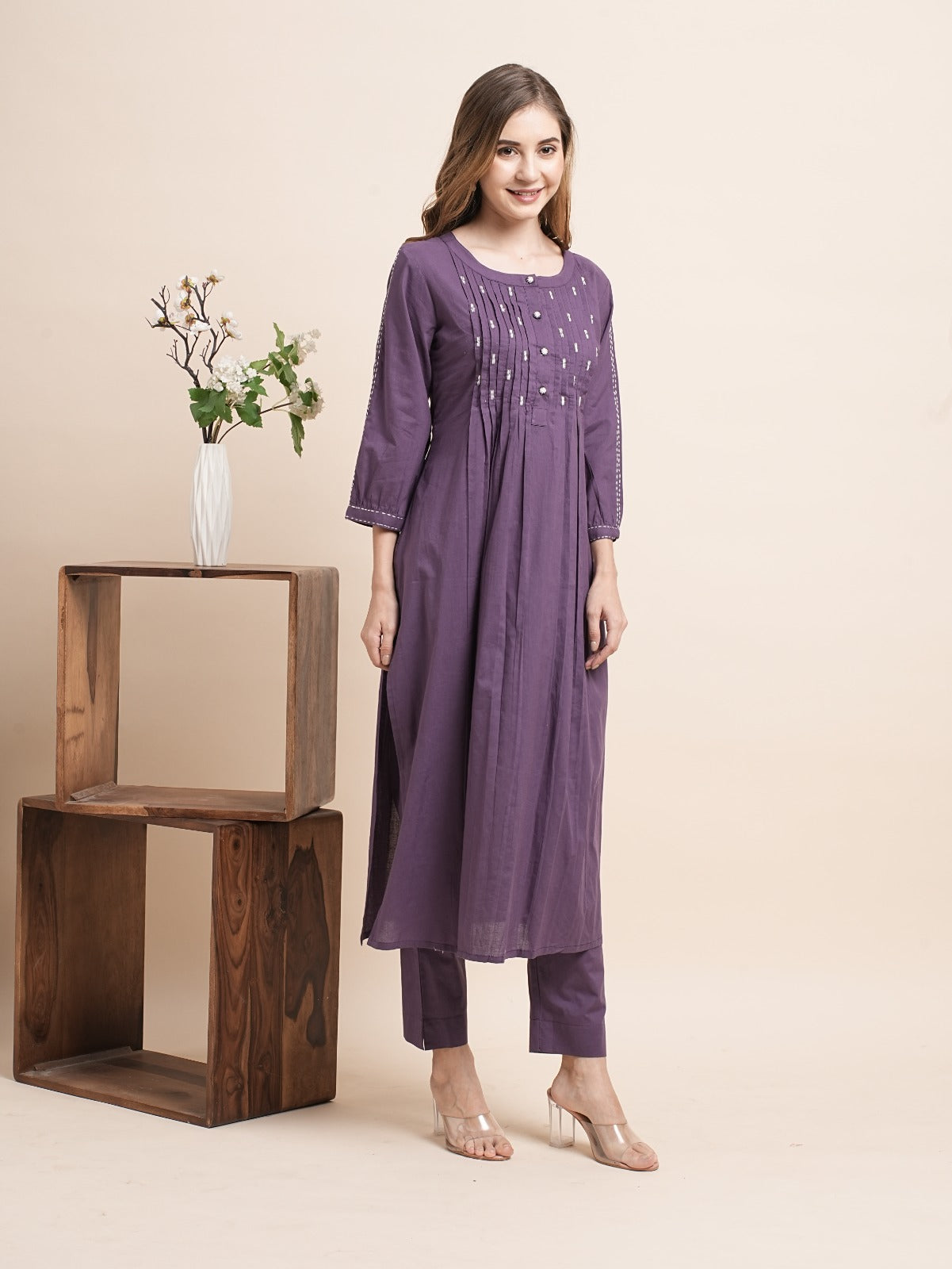 INDYES Woven Design Pure Cotton Round Neck Co-ords Set